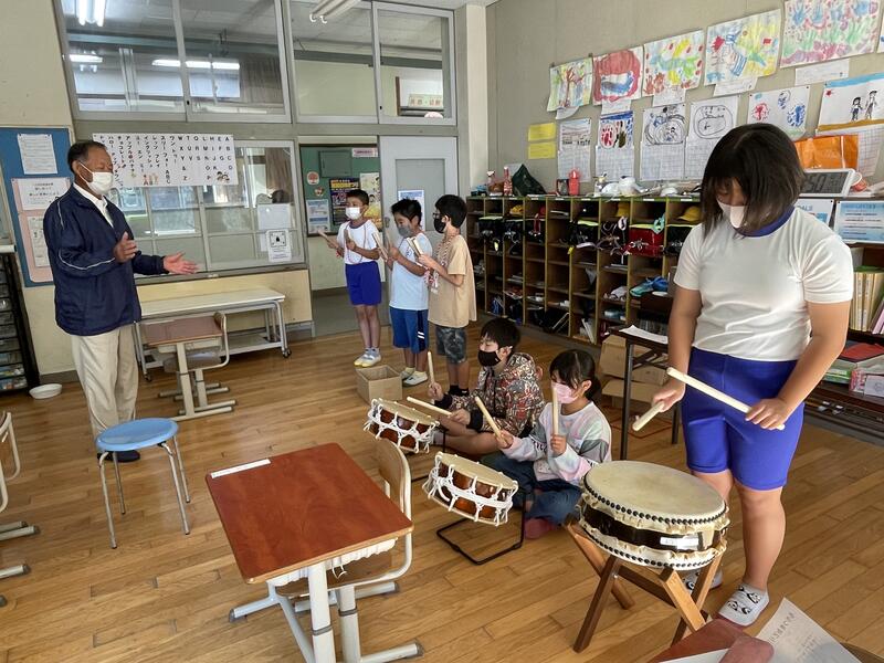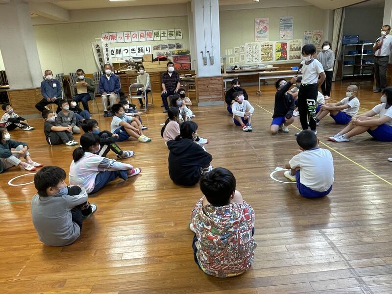 15日、餅つき踊り踊り保存会の竹下様をはじめ4名の講師の方に来校いただき、令和4年度最初の餅つき踊りの練習が行われました。