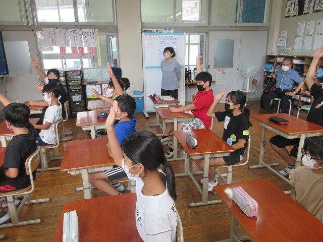 今日から2学期が始まりました。一回り成長した子どもたちの元気な姿を見ることができうれしく思いました。始業式の後は、各教室で2学期の目標を立てたり、宿題等を提出したりしていました。5時間目、低学年は、身体測定も行いました。まだまだ暑い日が続きますが、体調に気を付けながら頑張ってほしいと思います。