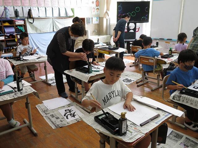地域学校協働活動事業の一環としてすべての時間ではありませんが、習字の先生がボランティアで2名、書写指導の支援に入られることになりました。早速、3・4年生の書写の時間に2時間、丁寧にやさしく支援していただきました。ありがとうございました。