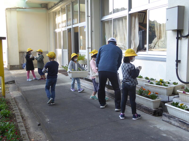 27日(水)に1~4年生が愛校作業で花の苗を植えました。
