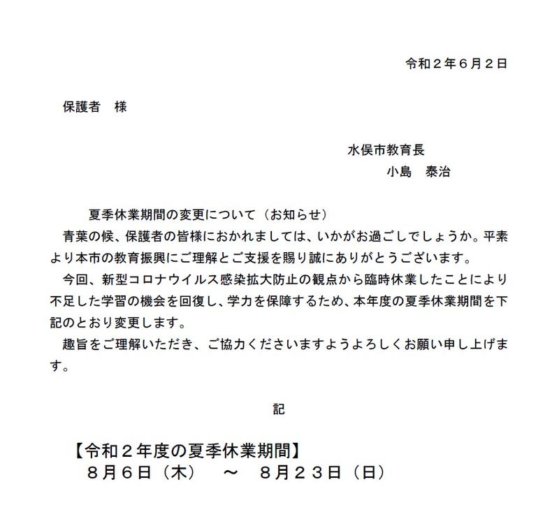水俣市教育委員会を通して熊本県教育委員会から以下のような通知がありましたのでお知らせします。