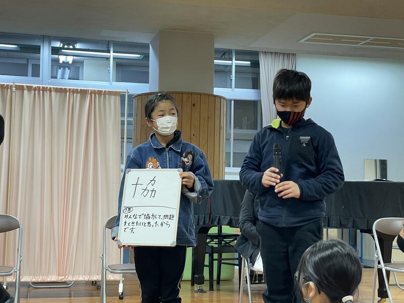 始業式では、各学年の3学期の目標を相談して漢字一文字で表してもらいました。