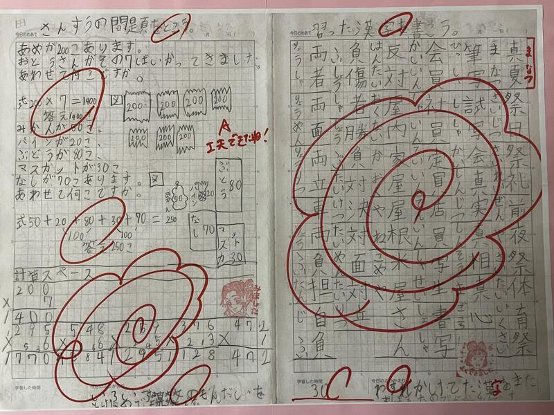 2学期に家庭学習をがんばった子どもたちのノートです。