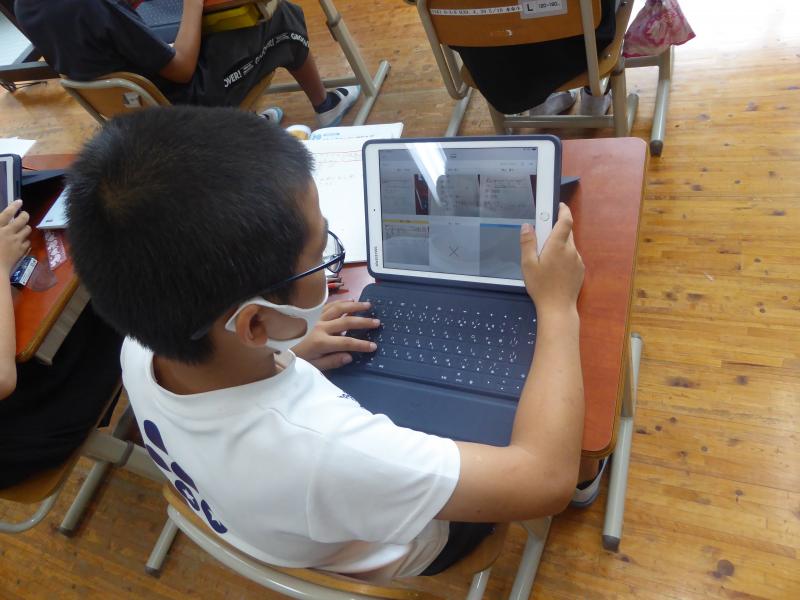 7月9日(金)3,4年生の複式学級でICTを活用した算数科の研究授業が行われました。