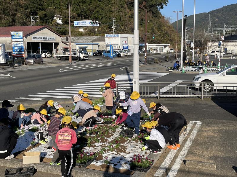 今日は二回目の地域ボランティア活動として、新水俣駅にある花壇に花の苗植えを行いました。