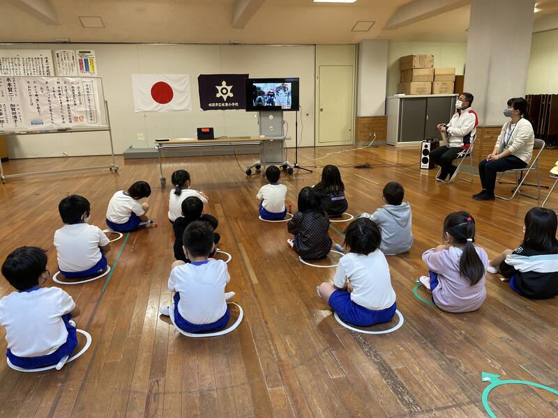 今日は「水俣病患者さんとの交流会」を低学年は3時間目、中高学年は4時間目にリモートで行いました。