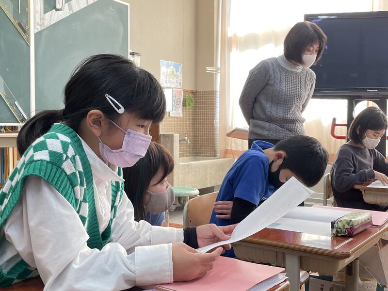 午前中の4時間、本校を含む県内3つの小学校と熊本県環境センター、水俣病資料館がオンラインで結ばれ、同時に学習が進められました。