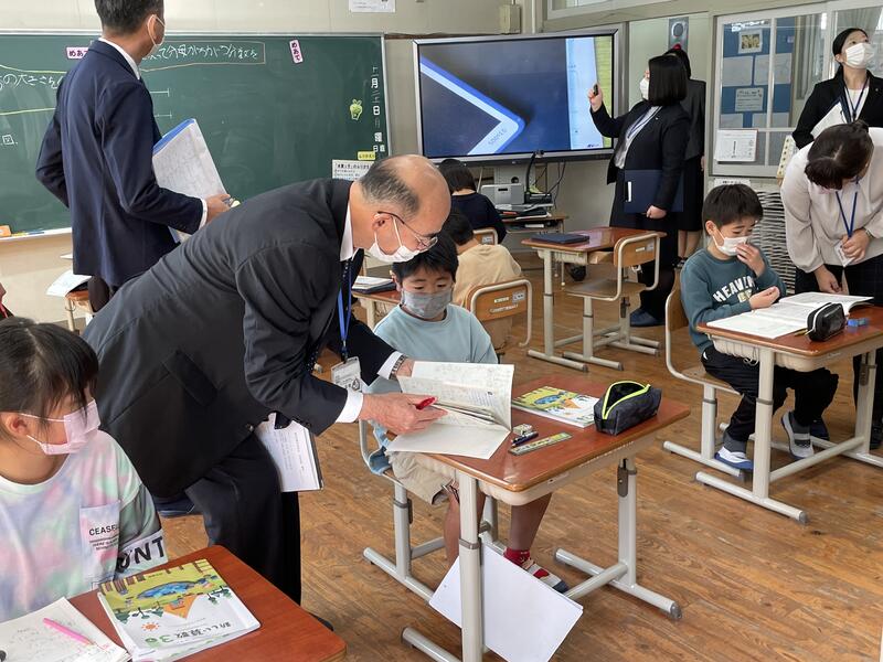今日は熊本県教育委員会、芦北教育事務所、水俣市教育委員会の先生方による学校視察がありました。