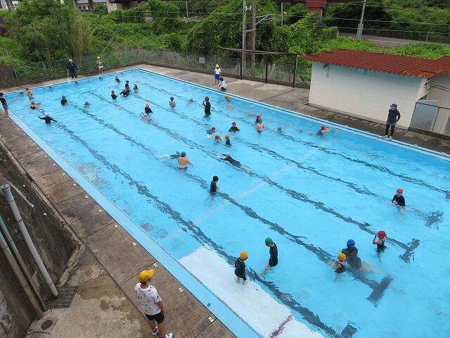 3時間目、プール開きがありました。入念に準備運動をし、水慣れをしながら、プールで渦を作ったり、宝探しをして楽しみました。また、高学年で泳ぎが上手な人にはお手本の泳ぎを見せてもらいました。今年もプールでのけがや事故がないよう安全第一で学習していきます。そして、自己の目標が達成できるよう粘り強く頑張って欲しいと思います。