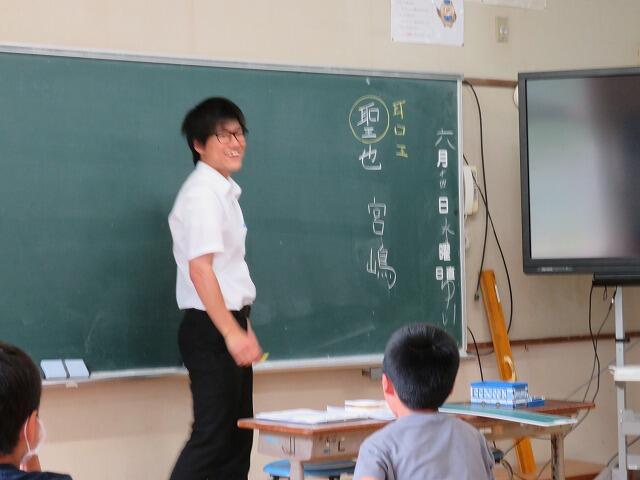 6月5日から2週間、教育実習に来られました。主に2年生と一緒に学習していきます。6月5日の全校集会で自己紹介をしていただきました。けん玉も上手でした。