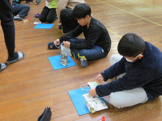 1・2年生は、3時間目にお話を聞いたり、一緒にじゃんけんゲームなどをしたりしました。3年生から6年生は、4時間目にお話を聞いたり、患者さん方と一緒にエコバッグを作ったりしました。