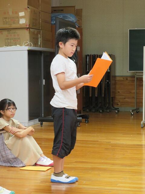 9月4日(水)の児童集会の時間に学年の代表が2学期に頑張りたいこと等を発表しました。1学期や夏休みのことを踏まえ、2学期の学習や行事のこと、家庭生活のことまで自分なりの目標を発表してくれました。