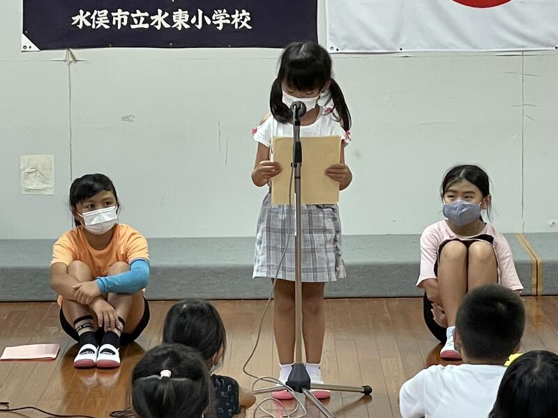 今日は全校集会で各学年の代表者から2学期のめあての発表がありました。