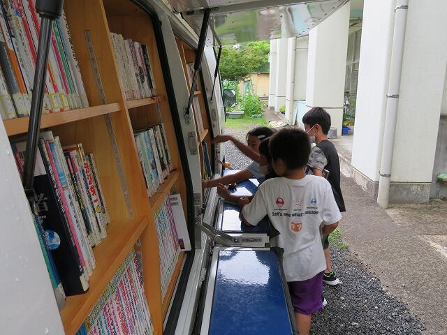 今日は、月に一度の巡回図書の日。待ってましたとばかりに、多くの子どもたちが昼休みに本を借りていました。