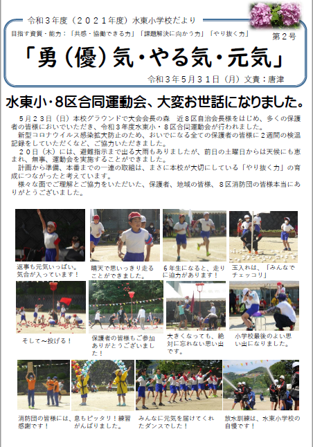 これからも、水東小学校の育てたい資質・能力である「共感、協働できる力」を大切に育んでいきたいと思います。