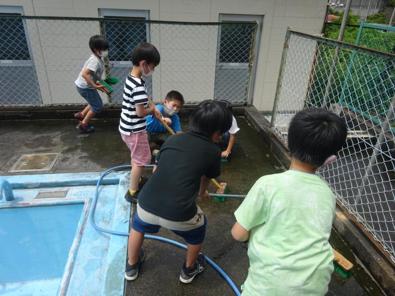 今週は、3~6年生がプール掃除をしてくれるので、1・2年生もお手伝いできて嬉しそうでした。