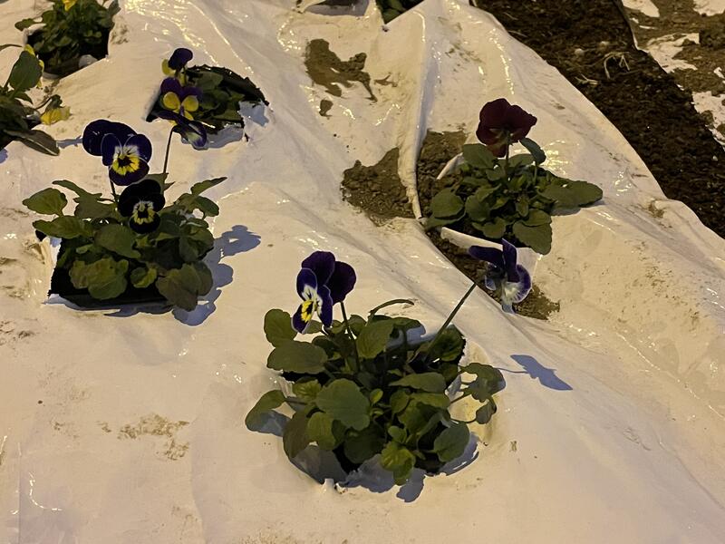 学校帰り、12月に子どもたちが植えた花の苗を見に行きました。