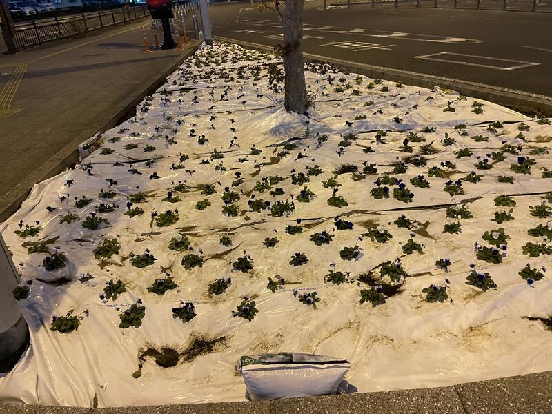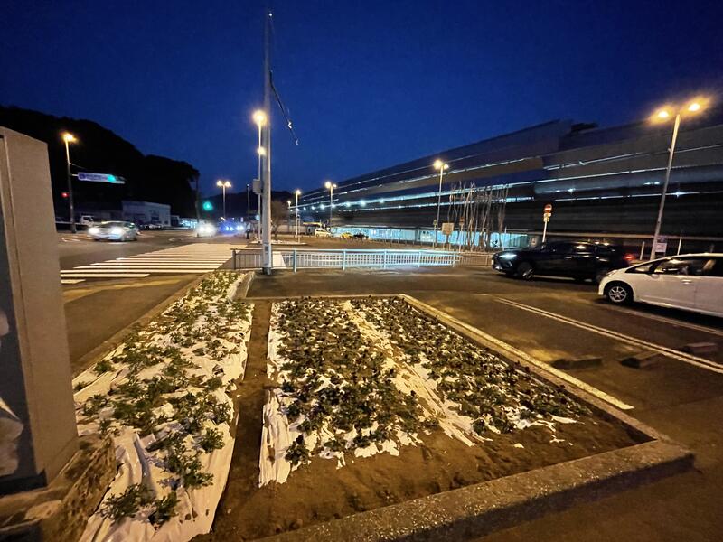 12月22日に全校児童で植えた新水俣駅にある花壇の様子です。