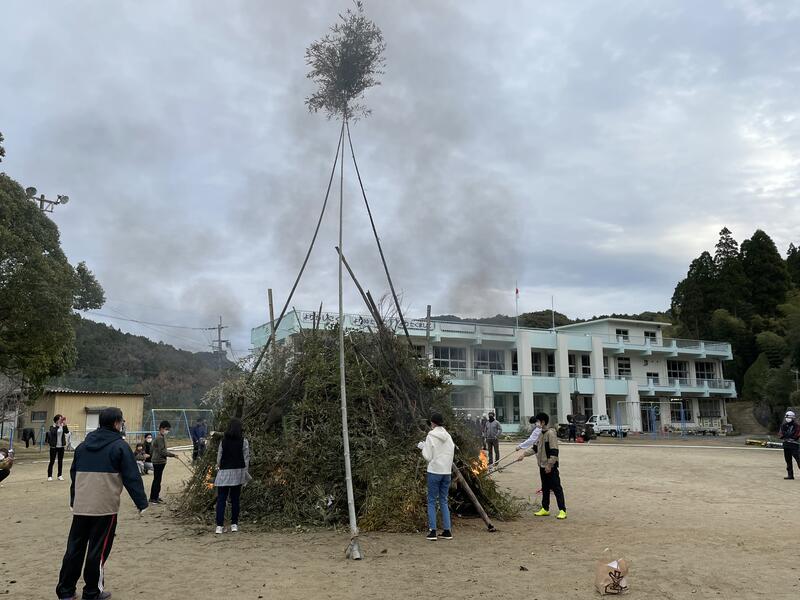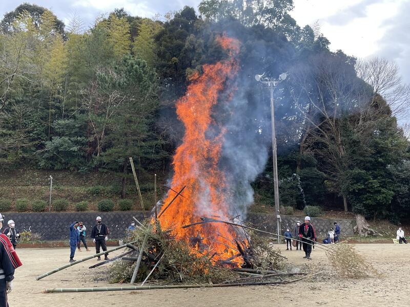 1月8日(土)に、水東小学校のグラウンドにて、どんどやが行われました。