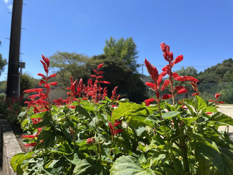 8月8日、職員で手分けをして「サルビアの切り戻し」や「散水のためのホースの設置」、「グラウンドの整備」などを行いました。