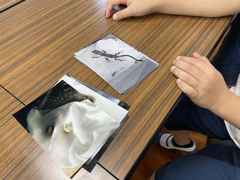 2時間目の休み時間、3年生が夏休みに卵から産まれたカナヘビの写真を見せに来てくれました。