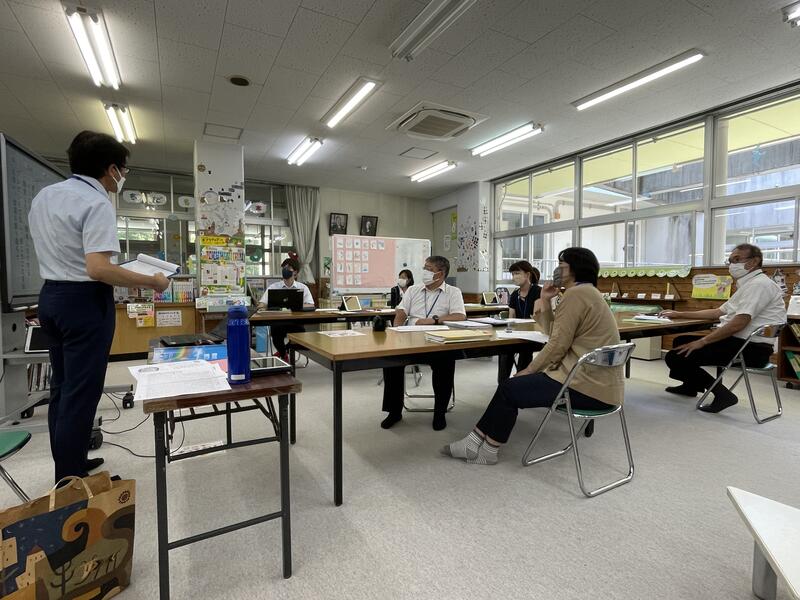 7月29日午後、水俣第一小学校より講師として指導教諭である寺川芳夫先生においでいただき、国語の学習構想案作りの校内研修を行いました。