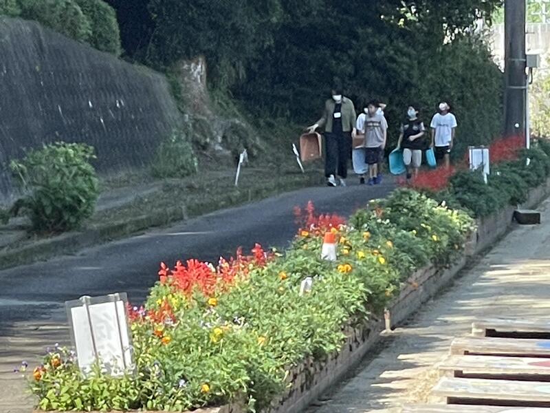 8月8日、職員で手分けをして「サルビアの切り戻し」や「散水のためのホースの設置」、「グラウンドの整備」などを行いました。