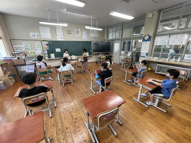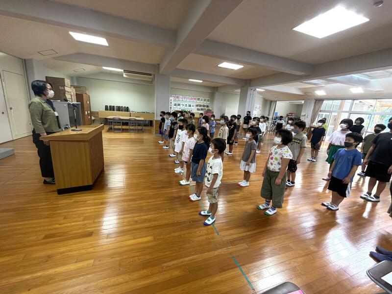 始業式では、「新型コロナウイルスへの感染防止対策をきちんと行って、楽しくしっかりと勉強ができる、よい2学期にしてください。みんなと先生方で力を合わせてがんばりましょう。」と話しました。