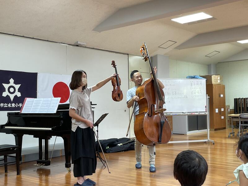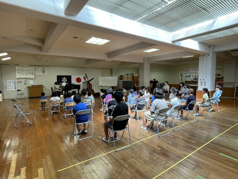 音楽室やロビーなどで生の演奏を間近に聴いたり、音楽や楽器にまつわる話などを演奏家から直接聴く機会をつくることによって、音楽ファンを増やしていこうというアウトリーチ事業が本校で行われました。