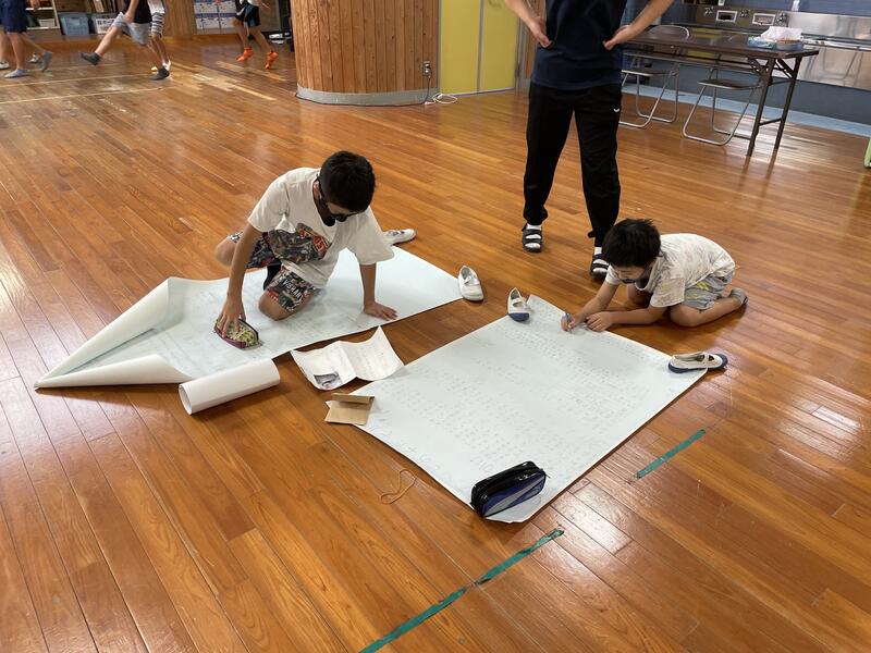 9月8日に、3、4年生で三人グループを作り地震が起きた時のために、防災リュックに何を入れるかを話し合いました。1番にリュックに入れるものとして、食料や水、テントなどのアイデアが出ました。その次は、懐中電灯、タオル、着替えが出ました。これから私は、家族と相談をして、事前に準備をしたり、水や缶詰をかっておこうとおもいました。これから台風が心配な季節なので、皆さんも備えておくと安心ですよ。
