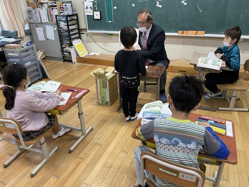 1年生は、プレゼントしたネギと春菊の苗のお礼を言いに、校長室まで来てくれました。