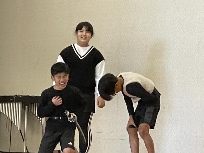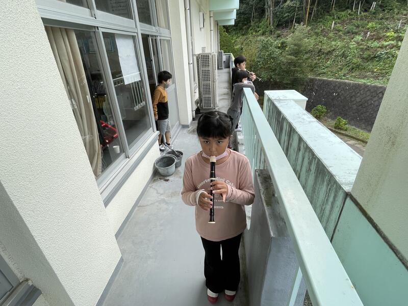 6年生は、明日のふれあい文化祭の練習を運動場で大きな声でやっていました。