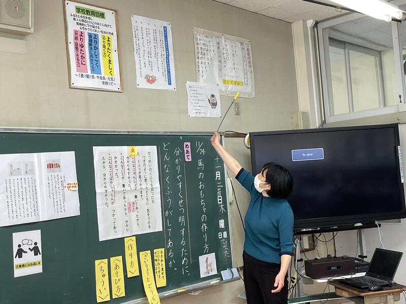 「馬のおもちゃの作り方」という単元で、「分かりやすくせつめいするために、どんなくふうがしてあるか。」について考えました。