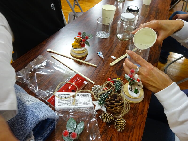 今回はクリスマスに向けてスノードーム作りに決まりました。