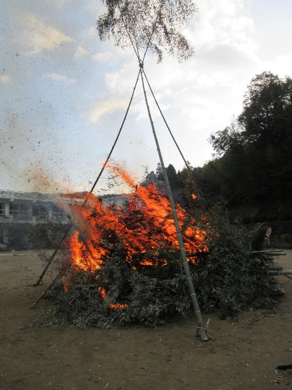1月7日(土)に天候が心配されていましたが、無事、水東小学校グラウンドでどんどやが行われました。