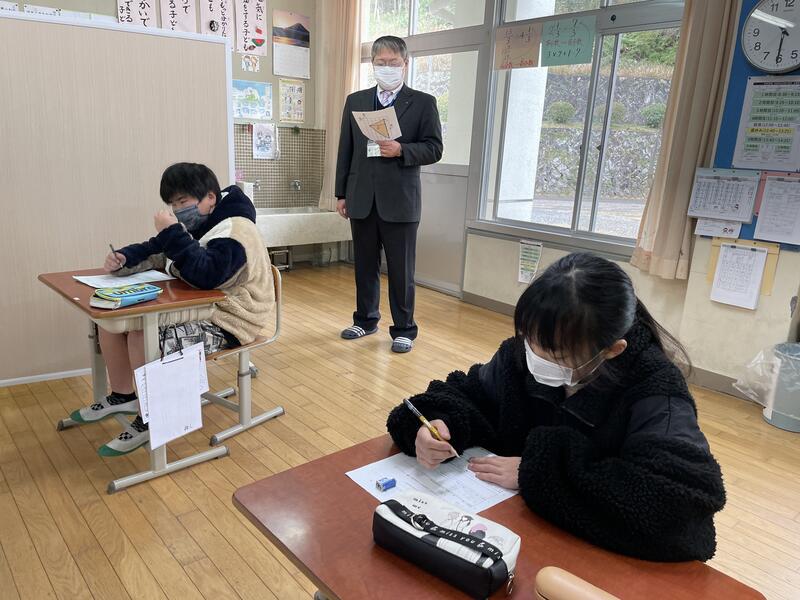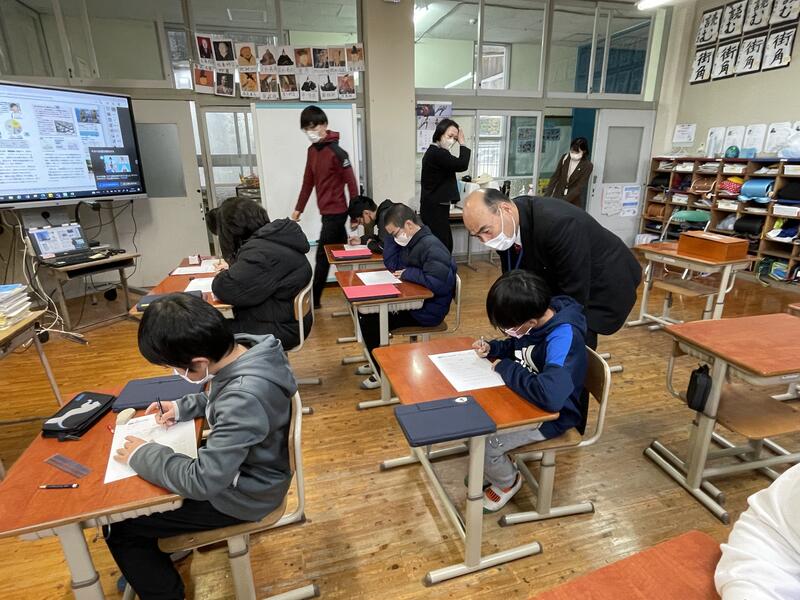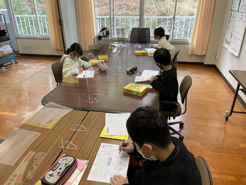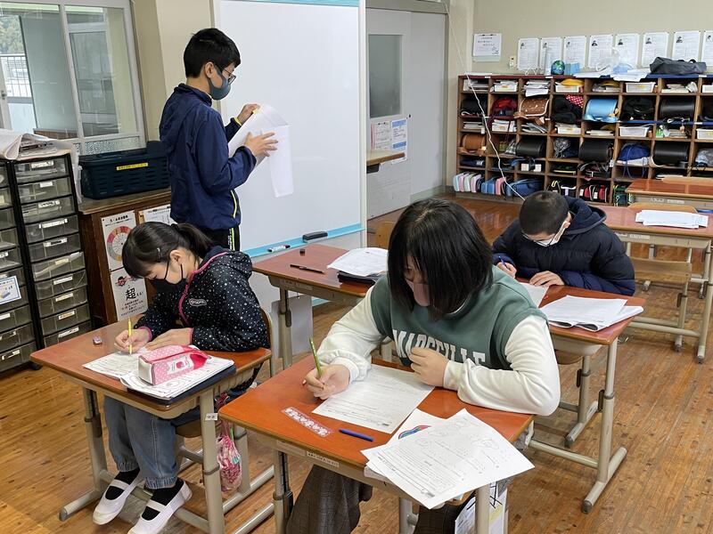 検査を受けない4年生は、校長室でアシストシートに取り組みました。