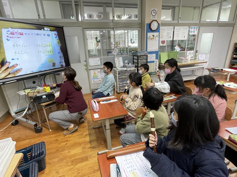 6年生は歌の練習。きれいな歌声の出し方を学んでいました。