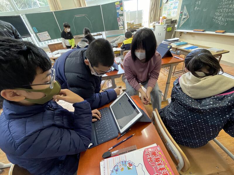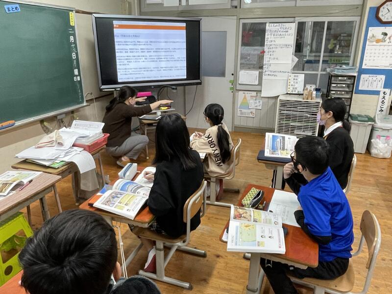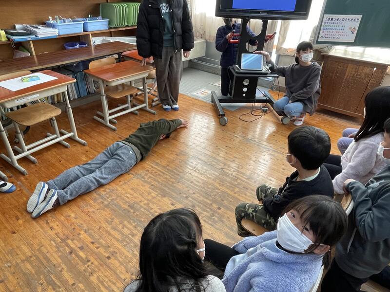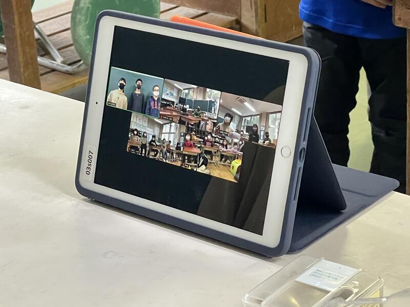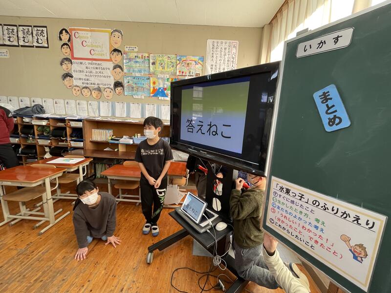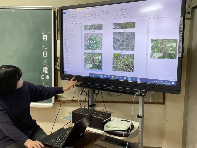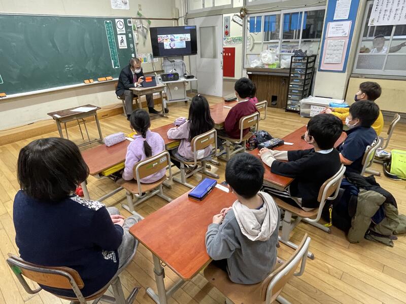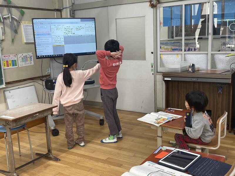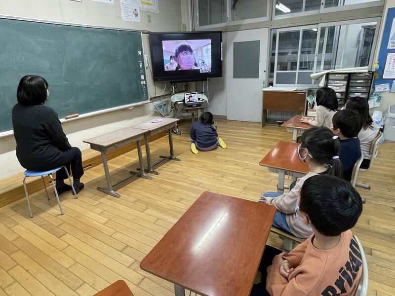 児童会のみんなの進行で互いの教室をオンラインで結び、交流しました。