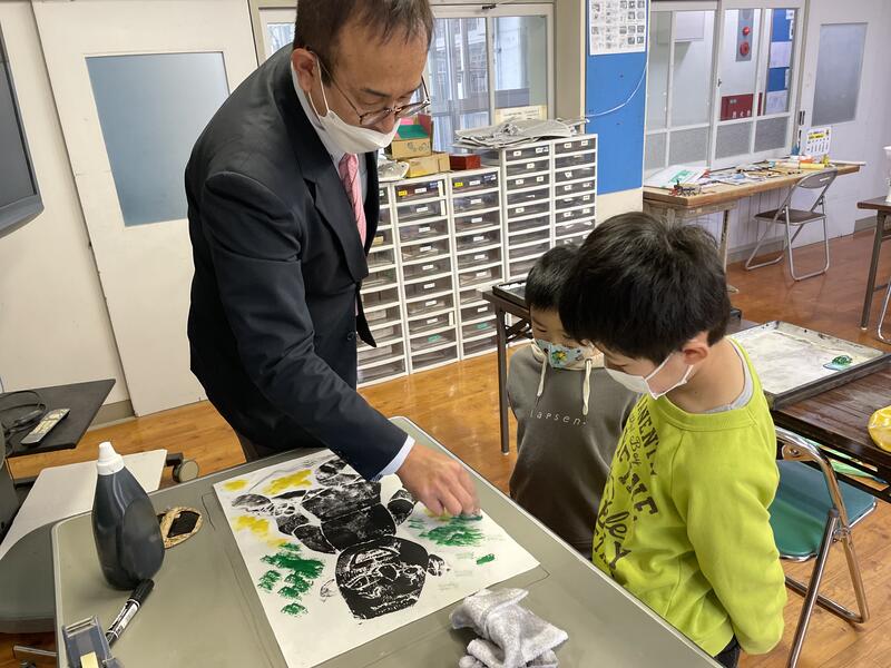3,4年生は図工の作品に関する意見の交流をしていました。
