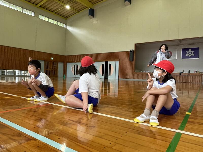 来週の授業参観時の発表に向けて、今日は餅つき踊りの最後の練習を行いました。