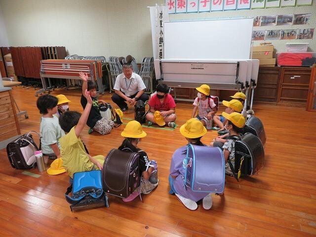 今日は水曜日。一斉下校でした。水東小の人権宣言「ぜったい いじめのない水東小にするために」や「8・9月の生活目標」について復唱したり、確認したりしました。そのあと、登校班ごとに分かれ、集合時刻や通学路の危険個所、登下校の際気を付けることなどについて話し合いました。登下校は、事故等に十分気を付けてほしいです。