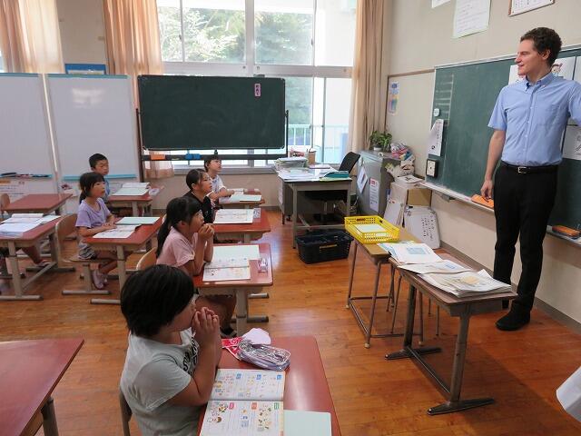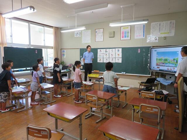 月曜日は、ALTのジェイソン先生が来校され、外国語活動や外国語の学習を一緒に行っています。今日の2時間目、3年生は、教室でジェイソン先生と一緒に歌を歌ったり、好きな食べ物を言い合ったりして楽しく学習しました。