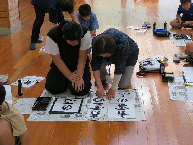 1、2校時、5・6年生は、書写(習字)を多目的室で行いました。例年行われている蘇峰展に向けて、お手本をしっかり見ながら練習しました。今回は、1学期に引き続き、学習ボランティアの方お二人にサポートをいただきました。お二方とも子どもたちの良いところをしっかりと褒めていただいています。とても助かっています。