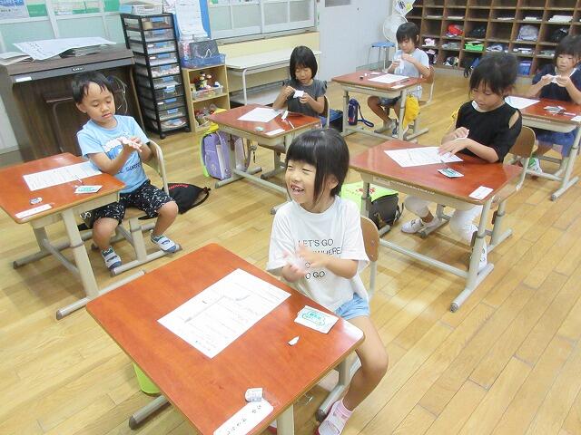 1年生は、養護教諭と担任の先生と一緒に性教育の一環として「せいけつなからだ」をテーマに授業をしました。子どもたちは、思った以上に手が汚れていることに気づき、外から帰ったら手を洗おうとする意識を高めていました。