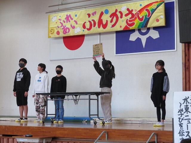 明日、12月15日(金)は、ふれあい文化祭です。これまで子どもたちが学習してきた成果を発表します。また、絵画や習字等も展示します。それから、音楽会で演奏した合奏や餅つき踊りも発表する予定です。ぜひご来校ください。お待ちしています。(12:30開会 水東小体育館にて)