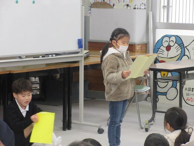 本日は、足元の悪い中、また、平日にもかかわらずご多用の中多くの方に足を運んでいただきありがとうございました。子どもたちは、これまで学習してきたことを一生懸命発表してくれました。1年生のかわいらしい発表でスタート。最後の6年生は平和の尊さについて学んだことを堂々と立派に発表しました。その後は、子どもたちをはじめ保護者の方との感想交流もありました。発表していただいた保護者の皆さん、関係者の方々ご協力いただきありがとうございました。