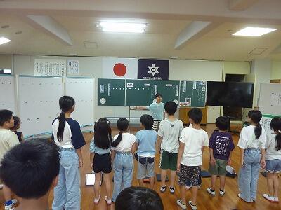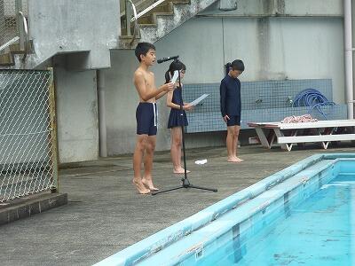 6月6日は、プール開きを実施しました。はじめの会は、げん気委員の進行で!校長先生からは、安全面に気を付けることや体調管理をして水泳の学習に取り組むことの大切さについてお話がありました。