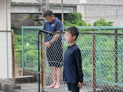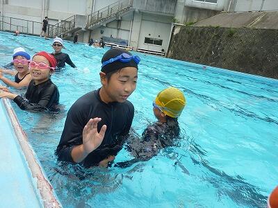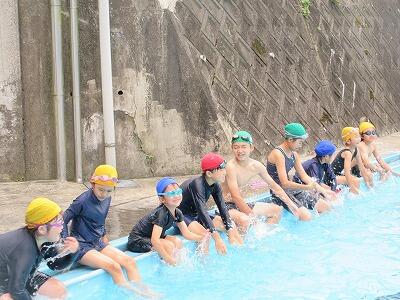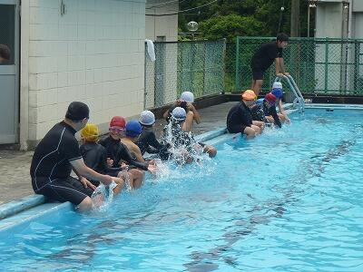準備運動をしっかりとしてから、水慣れ(顔やお腹に水をかけること)、水中うずまき、縦割り班で協力しての宝探しをしました。水慣れで水をかけあうと「つめた~い」「わあ~」などの歓声があがりました。高学年の児童が下学年の児童を気遣う優しさもいろいろなところで見られて、曇り空でひんやりしたプール開きでしたが、子どもたちは、心も身体もぽかぽかになったようでした。