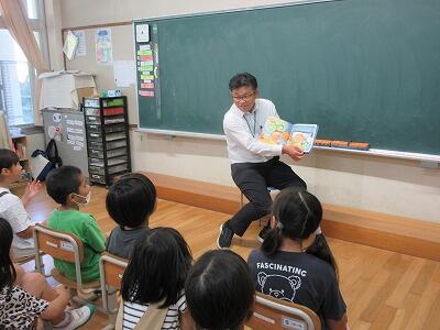 6月から職員によるシャッフル読み聞かせを始めました。読書推進員の先生がお勧めされた作品やぜひ子どもたちに読み聞かせたいお宝作品を各自選定し、読み聞かせました。子どもたちは楽しんで聞き入っていました。