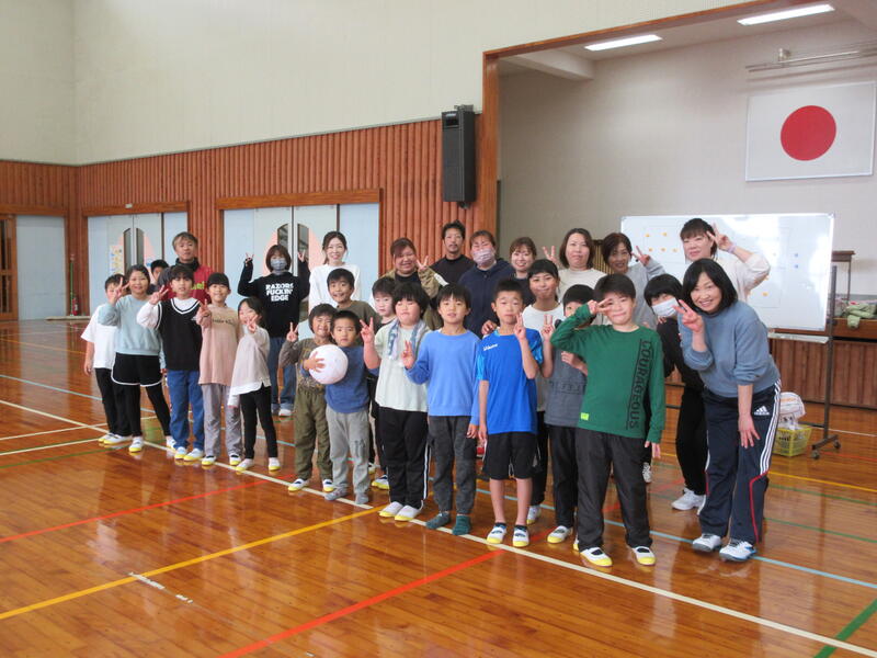 り、負けて悔しがったりと、真剣に取り組んでくれました。最後はみんなでハイ・ポーズ!!